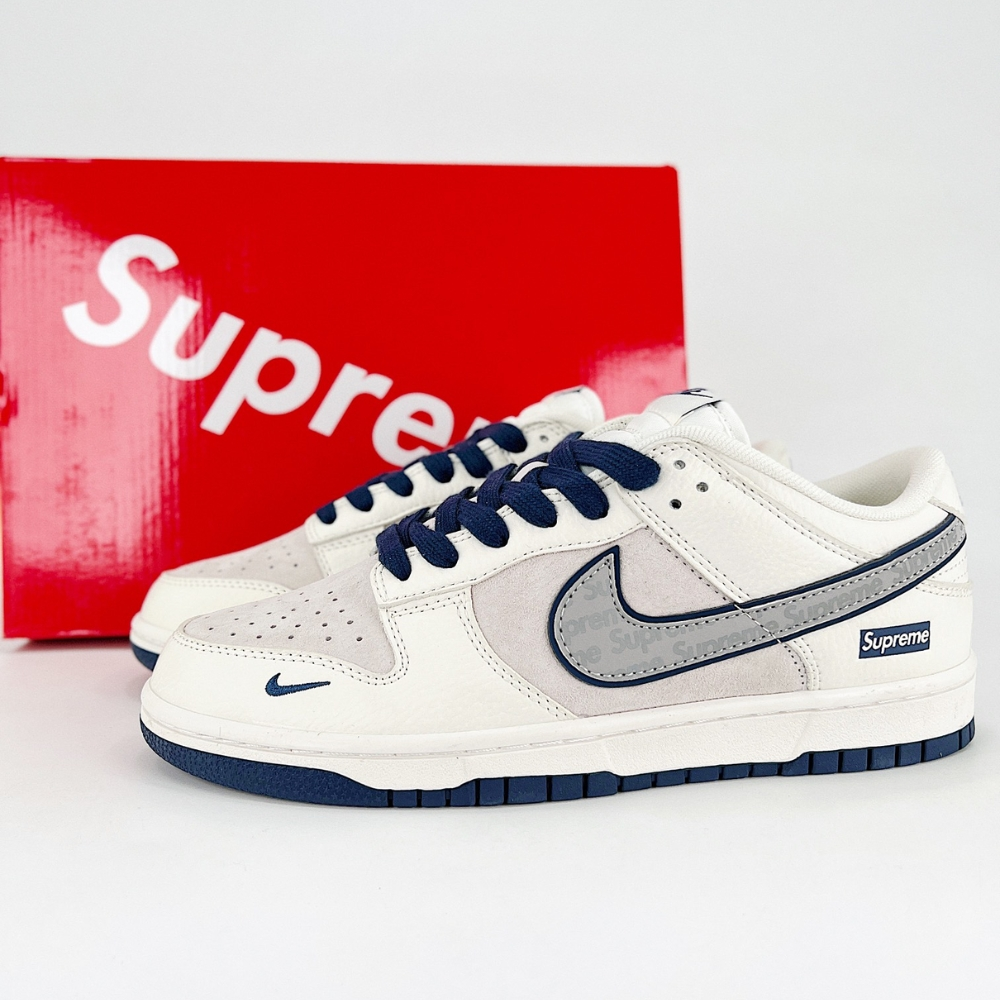 Nike SB Dunk Low X Supreme Casual Boots White Dark Blue